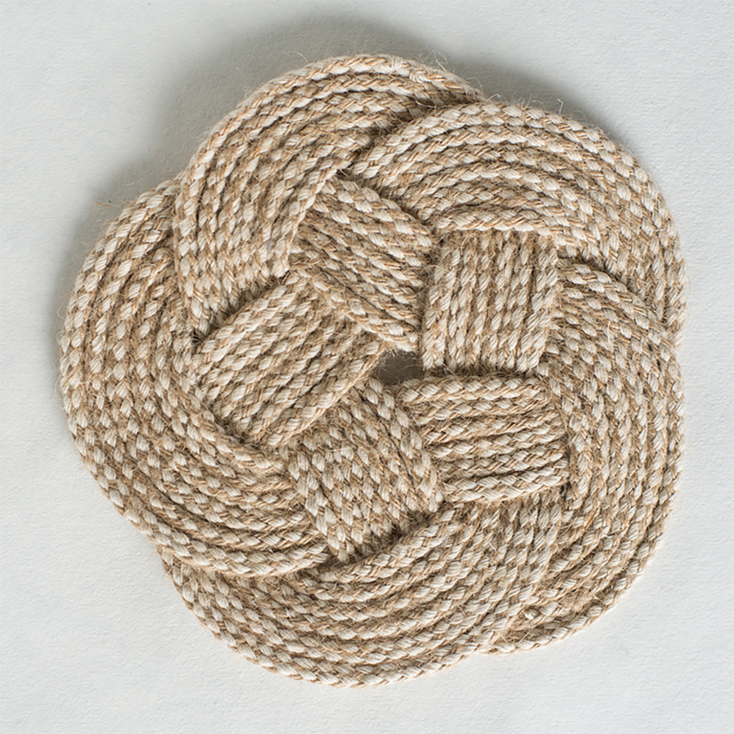 These beautiful coasters are handmade from a single strand of cotton/jute blended rope. Measuring approximately 6" in diameter, they fit perfectly under drinking glasses, coffee mugs, wine glasses or any normal size cup.