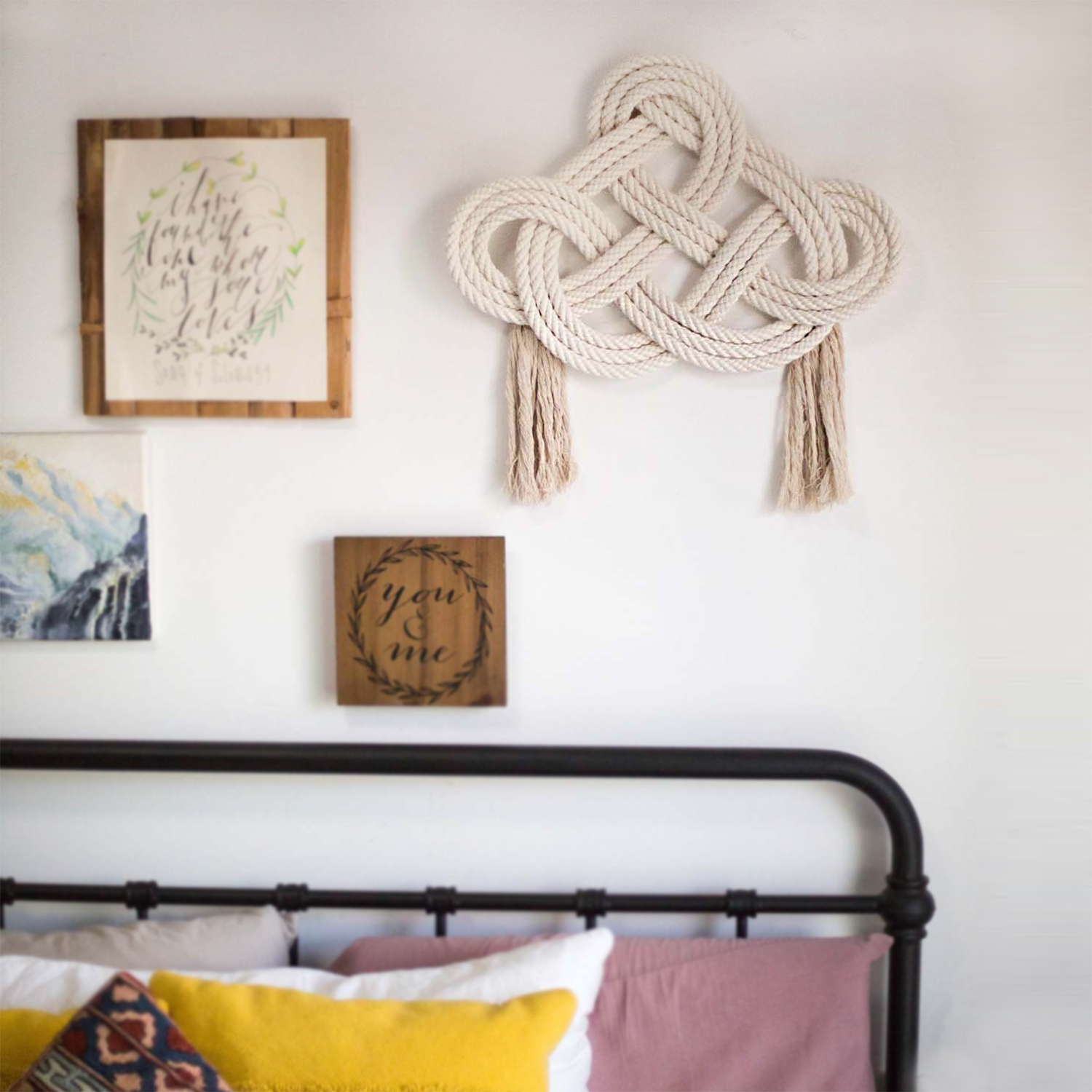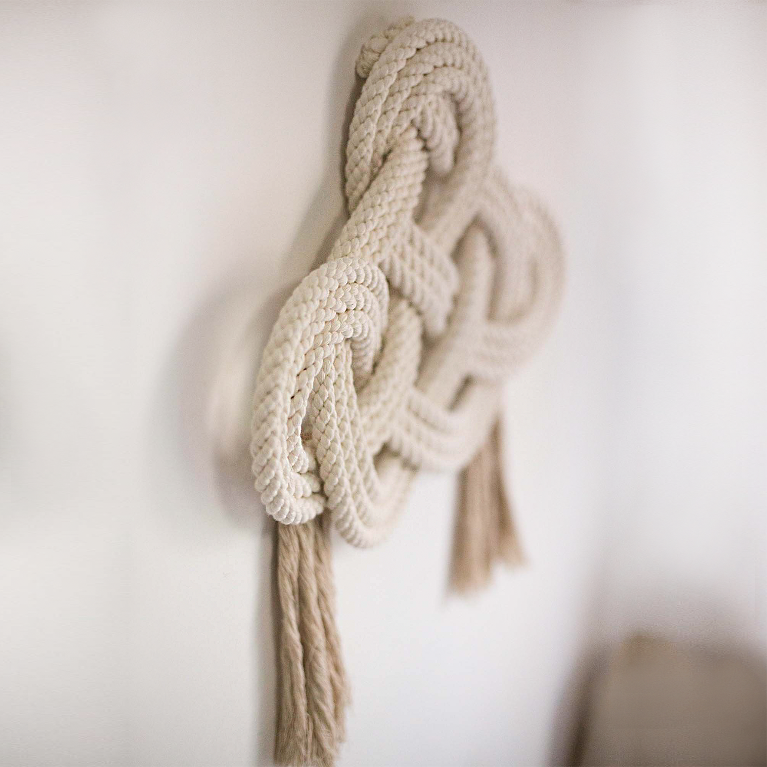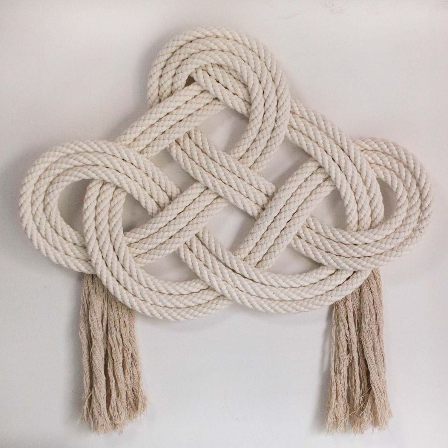 قطعة جدارية "إنفينيتي" مصنوعة يدويًا بعقدة ثلاثية وشرابتين. أبعادها ٢٢ × ١٨ بوصة بالإضافة إلى شرابات ٨ بوصات، هذه القطعة الفريدة تُضفي لمسةً رائعة على أي جدار!