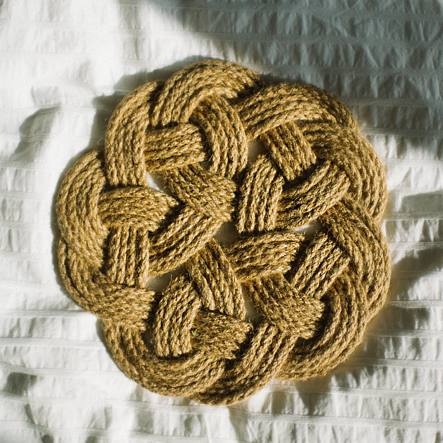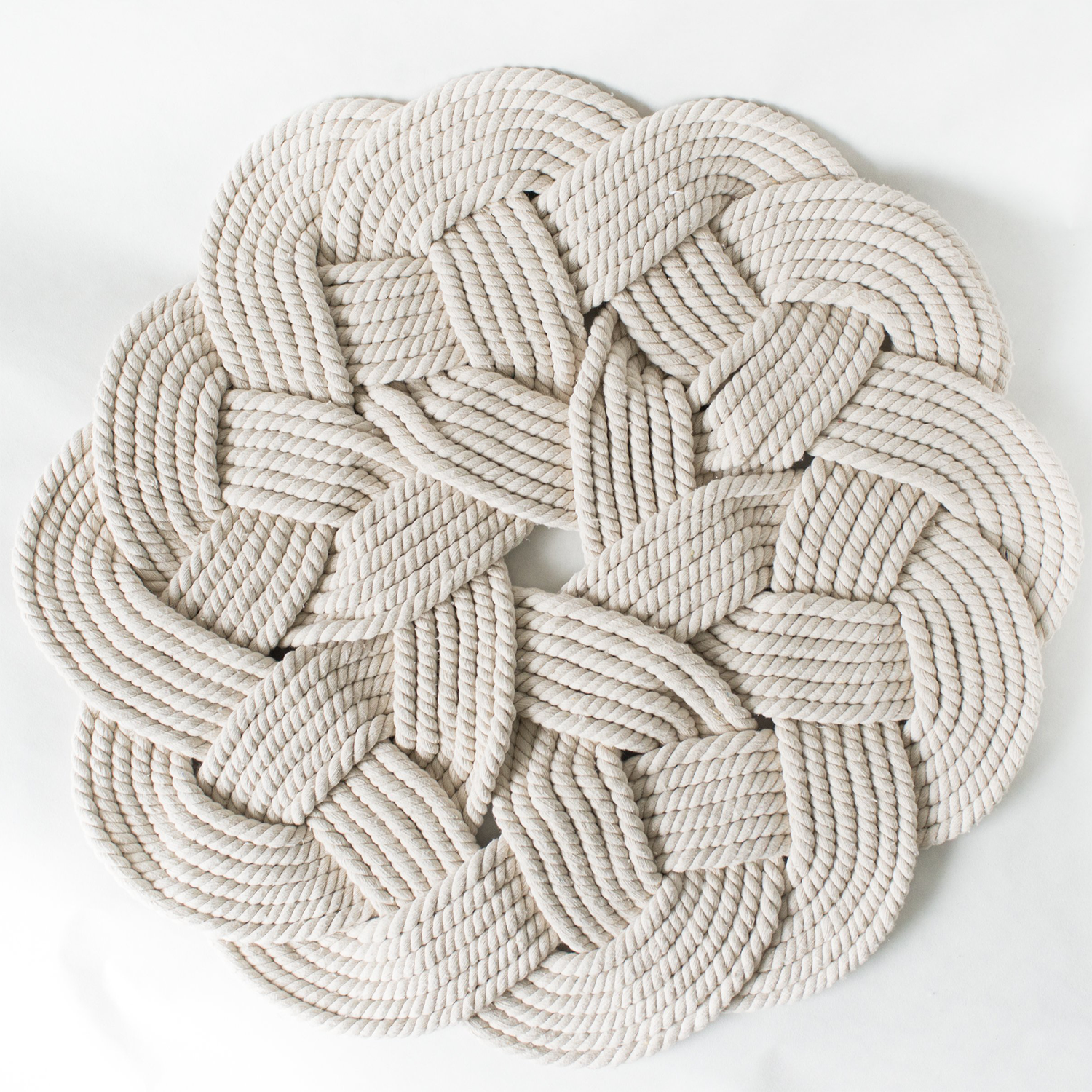 هذه الحوامل الثلاثية طريقة رائعة لحماية أسطح طاولاتك من حرارة الأواني والمقالي. يبلغ قطر كل حامل ثلاثي حوالي 9 بوصات، وهو مصنوع من خيط واحد من الحبل.